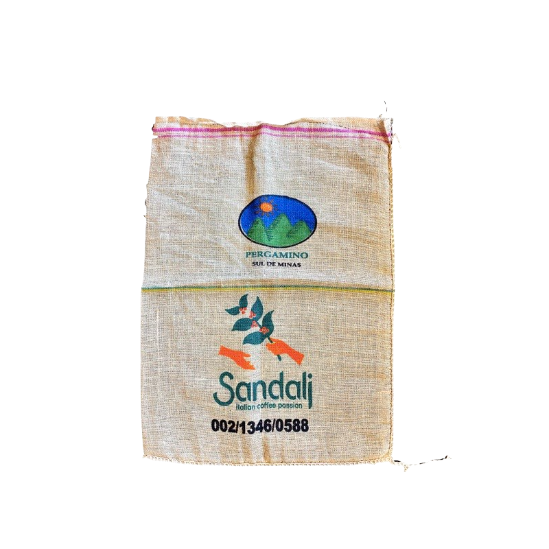 This jute bag comes from the Minas Gerais region, where coffee has been grown since the late 18th century. Numerous virgin forest areas still reign supreme among the plantations, making the ecosystem suitable for diversified cultivation. The climate wants the rainy season to unfold from April to August. In September, coffee begins to bloom and cherries develop during the next 9 months.