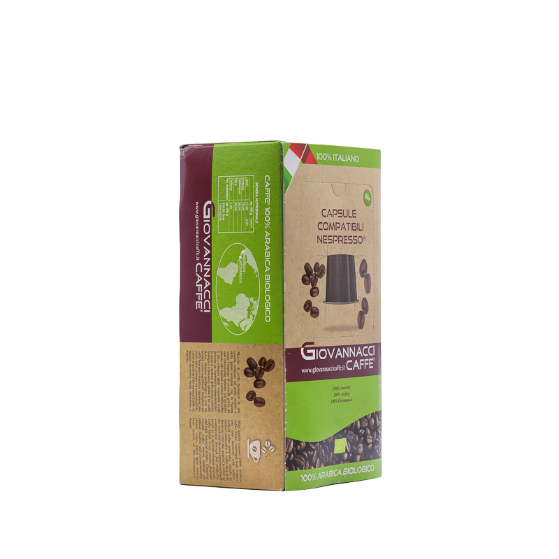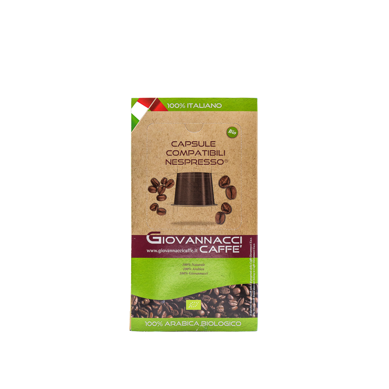 High quality organic 100% arabica coffee blend; cultivated with respect and total harmony with nature, without using pesticides, thanks to natural cultivation.A coffee that is in harmony with the natural fertility of the earth and the development of local communities through fair trade.The result is a medium-roasted organic coffee blend; sweet, intense, fragrant and with balanced acidity. Choosing organic coffee means making an ethical, healthy and eco-sustainable choice, values which have always been central to the Giovannacci brand.