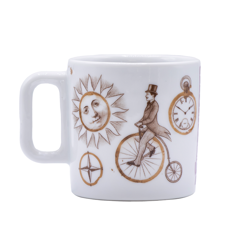 Illustration von Gianluca Bagnasco. Für den Becher hat Giovannacci eine Illustration geschaffen, die sich um die Kaffeekreise einer Tasse dreht, ein Referenzspiel, das elegante Motive schafft, die von den frühen 1900er Jahren inspiriert wurden.