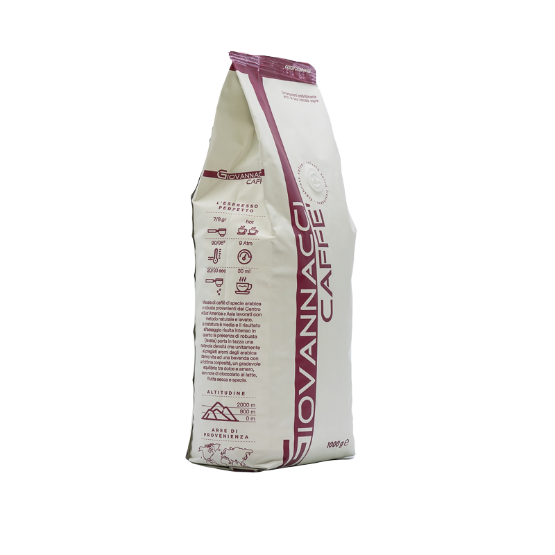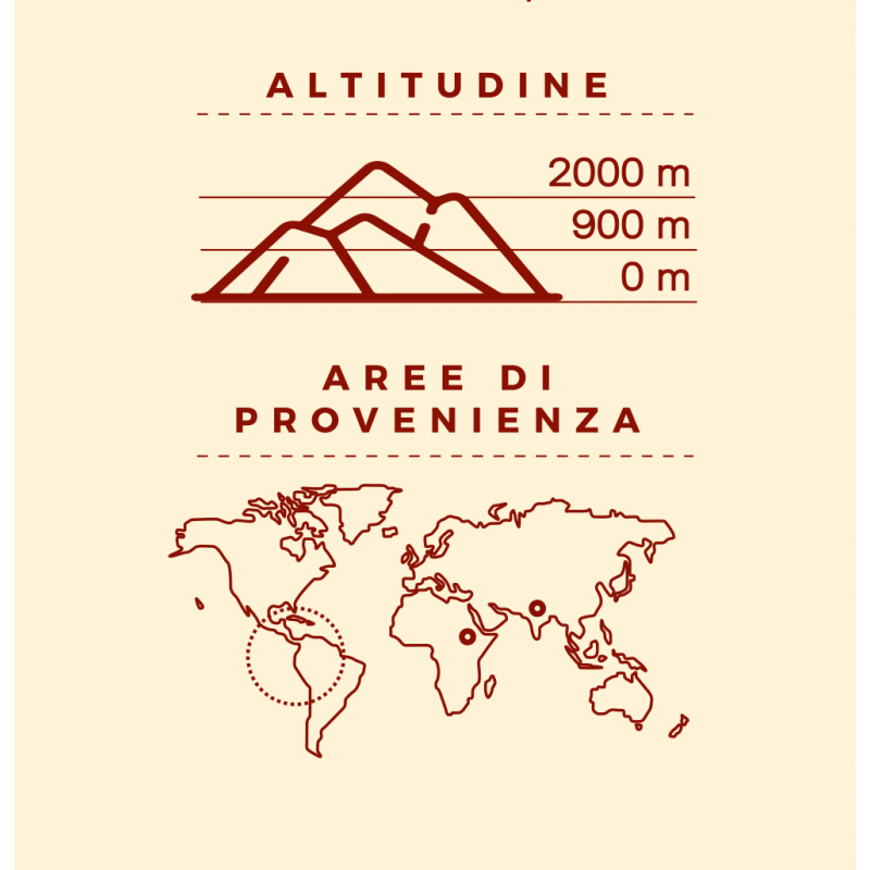 Blend of 60% Arabica and 40% Robusta coffees from Central and South America and Asia, processed with a natural and washed method. The roasting is medium and the tasting result is intense as the presence of Robusta brings a considerable density in the cup which together with the precious aromas of Arabica give life to a drink with excellent body, a pleasant balance between sweet and bitter, with notes of milk chocolate, dried fruit and spices.