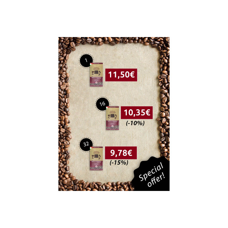 Our historical blend is our history, our identity. It consists of only Arabica coffees from the smallest and tallest selected plantations in Central and South America, Africa and Asia, processed with a natural and washed method. The roasting is medium and the tasting result is sweet and aromatic with notes of cocoa, almond, rum and cherry.