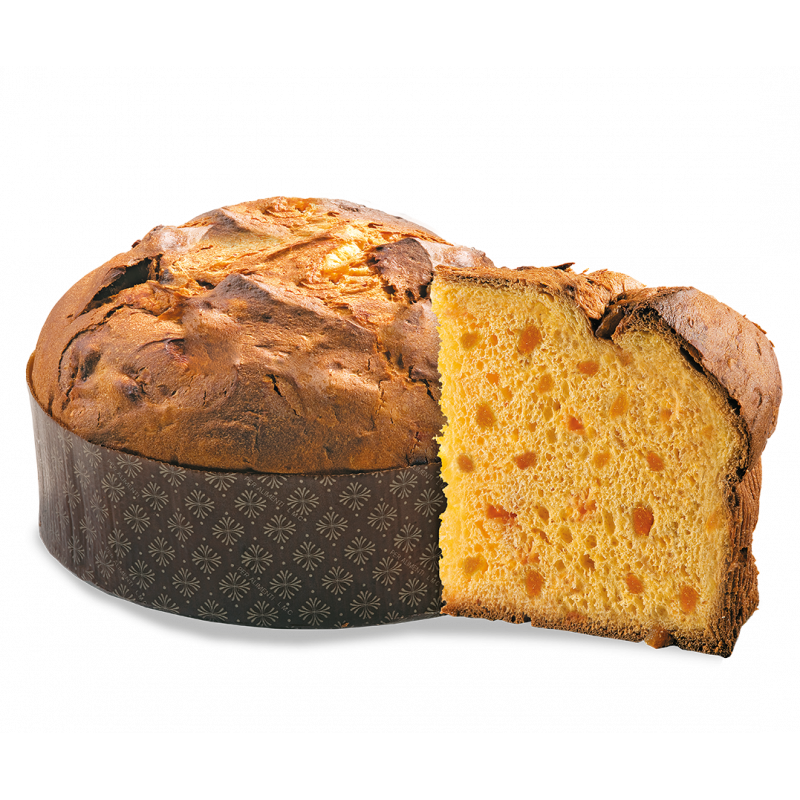 Specialità dalla forma bassa e dal gusto originalissimo grazie all'aggiunta di pezzi di albicocca nell'impasto.