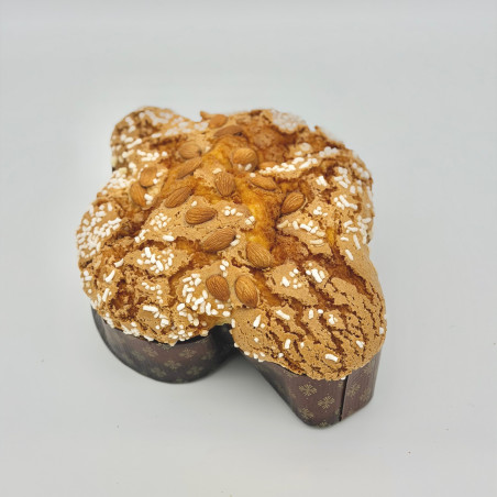 INGREDIENTI: farina di frumento, albicocca candita 24% (cubetti di albicocca, zucchero, sciroppo di glucosio-fruttosio), tuorlo d'uovo, burro, zucchero di canna, lievito naturale (farina di frumento), sciroppo di zucchero invertito, emulsionanti: mono e di-gliceridi degli acidi grassi, lecitina di girasole; malto d'orzo, sale, aromi. INGREDIENTI DELLA GLASSA E DELLA DECORAZIONE: zucchero, albume, "Nocciola Piemonte IGP", mandorle, armelline, farina di riso. Può contenere tracce di soia. Conservare in un luogo fresco e asciutto