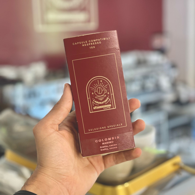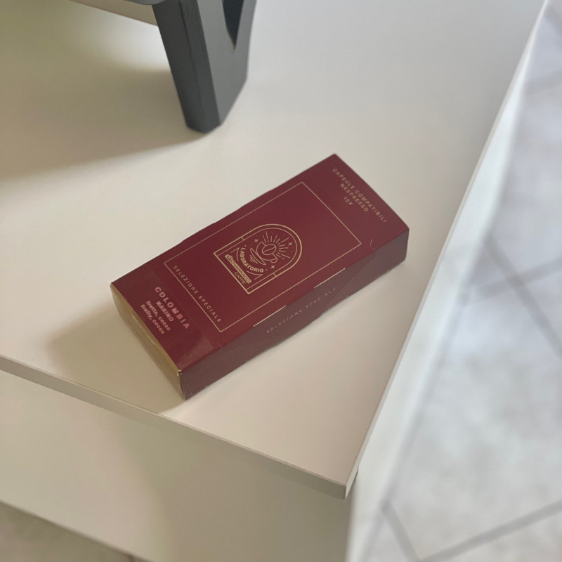 Confezione da 10 capsule autoprotette in alluminio contenenti Colombia Narino Honey Anaerobic.